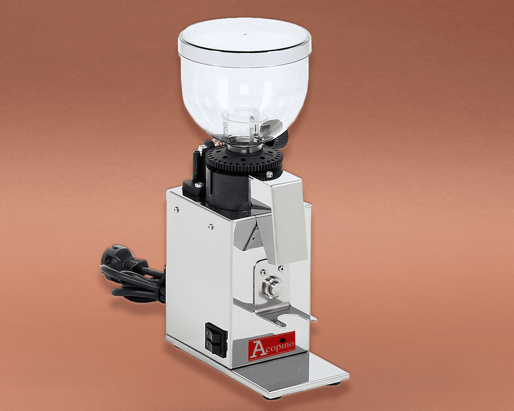 Setzen Sie bei der Wahl Ihre Espressomühle auf die richtige Karte! Die Mahlung Ihre Espressobohne ist von entscheidender Wichtigkeit für die Qualität Ihres Espresso und für das richtige Tassenergebnis. Mit der kleinen und kompakten Kaffeemühle Acopino Arona – Made in Italy – können Sie den Mahlgrad stufenlos auf Ihre Bedürfnisse und Ihre Espressomaschine einstellen. Die direkte Mahlung in den Siebträger verhindert zudem ungewollte Verluste des Kaffeemehles beim Umfüllen.