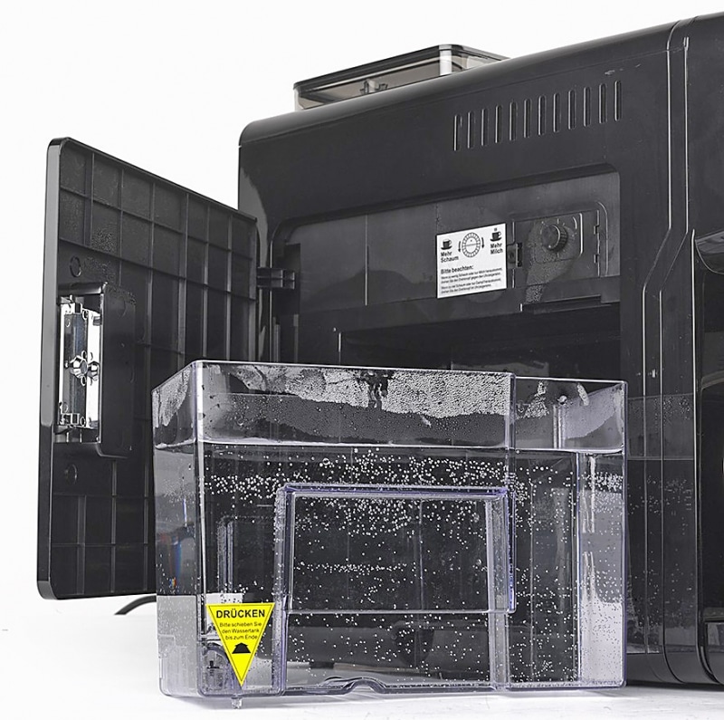 - Vielseitig: Verstellbare Kaffeemahlgradeinstellung, Bohnenbehälter mit 250 g Fassungsvolumen und mehrsprachige Menüführung