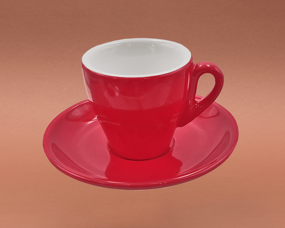 Bringen Sie Farbe in Ihren Espressogenuss! Original italienische dickwandige rote Espressotasse mit passender Untertasse aus der Markenkollektion von Nuova Point.