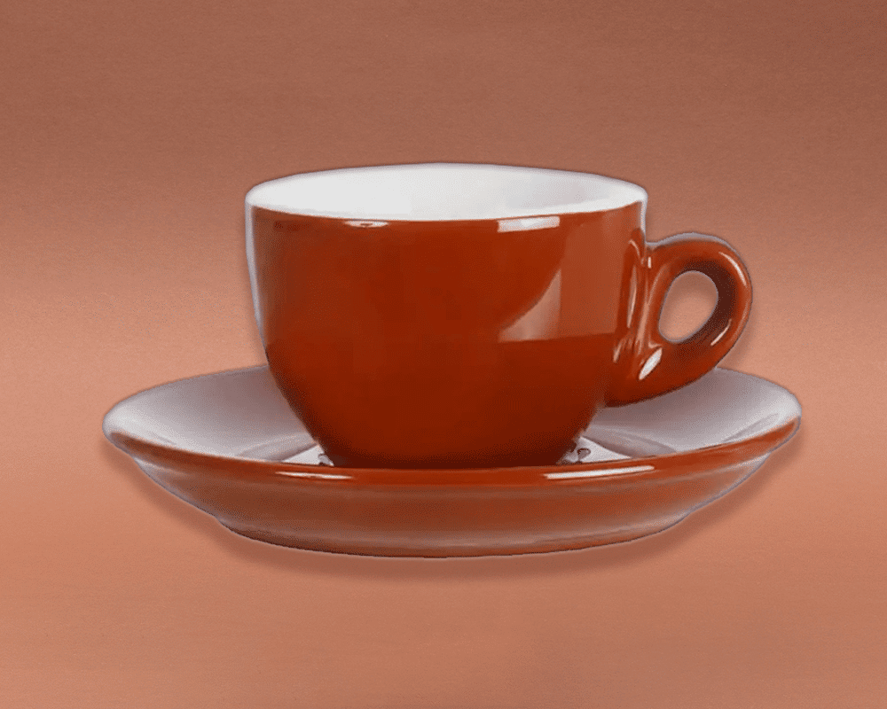 Bringen Sie Farbe in Ihren Espressogenuss! Original neapolitanische dickwandige braune Espressotasse im typischen Stil des Südens mit passender Untertasse aus der Markenkollektion von Nuova Point.